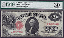 This is a real nice 1917 $1 Legal Tender Note. The serial number is *4252622B. It has been graded as a PMG VF-30. it is priced to sell....