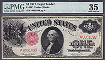 Here is a very collectible 1917 $1 Legal Tender Star note. It faces up better than the grade. Look at the back to get a better feel for the grade. A ...