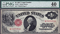 This is a very nice 1917 $1 Legal Tender star or a FR-37*. The serial number *7453251B. It has been graded as a PMG VF-40. It faces up real nice for t...