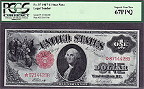 PCGS POP 1/none finer. PCGS-67PPQ for a Large Size Star Note? This is the finest 1917 $1 Legal Tender Star note, or for that matter any Large Size Sta...
