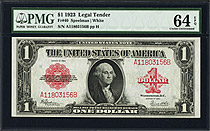 This is a very nice example of the 1923 $1 Legal Tender, which was the last of the large size notes. It features the red scallop seal to the left alon...