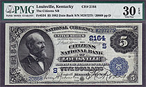 Kellys new book only list 4 1882 $5 Date Backs, charter # 2164, serial number 20868. There are only 5 1882 $5 Date Backs known from this Bank. Not man...