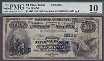 Here is a Fr.-545 or a 1882 $10 Date Back. The Chtr # is 2532 and is from The First National Bank of El Paso, TX. It has been graded as a PMG F-10. Th...