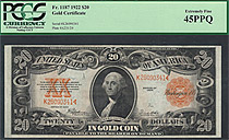 This is a very nice and problem free 1922 $20 Gold Certificate. The serial number is K26090341 and it is in a PCGS-45PPQ holder. It is getting harder ...