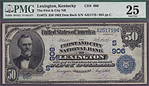 Here is a nice 1902 Date Back $50 note from the First and City National Bank of Lexington, KY. The Charter number is 906 and the serial number is 685....