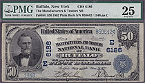 Here is a nice 1902 $50 Plain Back from The Manufactures and Traders National Bank of Buffalo, New York. The serial number is 1948 and the charter nu...