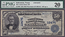 Here is a real nice example of a 1902 $50 Plain Back from the United States National Bank of Galveston, TX. The bank serial # is 407 and the Charter ...