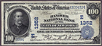 There are only 2 of these $100 1902 Date Backs notes known from this bank. This is a 1902 $100 Date Back from The Hanover National Bank of The City Of...