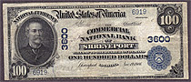 This is a 1902 $100 NBN from the Commercial National Bank of Shreveport, Luisana. The Charter number is 36oo and the serial number is 6919. I found tw...