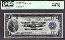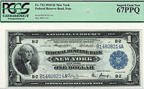 This is a 1918 $1 New York FRBN note that has been graded as a PCGS-64PPQ. A true no problem note with all the good attributes that one would expect.