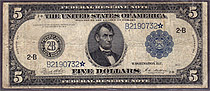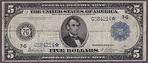 Here we have a problem free 1914 $5 Federal Reserve Note from the St. Louis district. On the obverse is featured the scalloped blue seal to the right ...