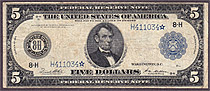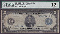 Fr.-875* 1914 $5 FRN Star (5 known) Ser. # H411034* PMG F-12