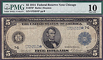 Fr.-870* 1914 $5 Chicago FRN Star (23 known) Ser. # G724510* PMG VF-10