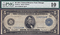 This is a 1914 $10 FRN from the Chicago District. The serial number is G1320144* and it is in a PMG-10 Holder, There are 56 known as of Jan 2014. Nic...