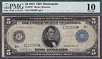 Fr.-878* 1914 $5 Minneapolis FRN Star ( 9 known ) Ser. # I125599* PMG VF-25