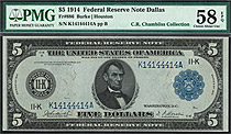 Fr.-886 1914 $5 Dallas FRN Ser. K14144414A PMG-58EPQ
