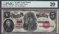 Fr.-88* 1907 $5 Legal Tender Star Ser. # *831224B PMG VF-20