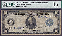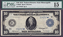 Here we have another rare 1914 $10 FRN star from the ever tough Minneapolis district. There are only 10 known in all grades. This is one of the best o...