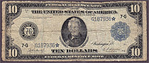 This is a Fr.-930* or a 1914 $10 FRN star from Chicago. The serial number is G187936*. There are only 34 known to exist. There is a small hole in the ...