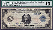 This is one of the finest 1914 $10 Federal Reserve Notes I have ever owned. It is a 1914 $10 Federal Reserve Note from the ever popular San Francisco...