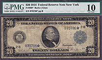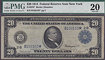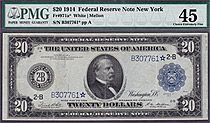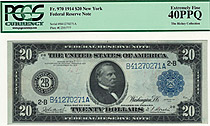 This 1914 $20 Federal Reserve Note is from the New York district. It is also from the Famous Dave Rickey Collection. According to the PCGS POP report ...