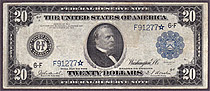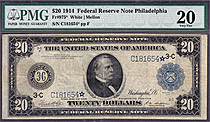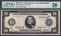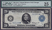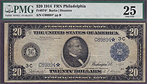 Here we have a FR-974* which is a 1914 $20 FRN from the Philly district in a PMG VF-25 holder. There are only 15 known according to Doug Murrays book....