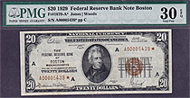 POP 1/0 Finer. Here is another 1929 $20 FRBN Star note from the very rare Boston district. Of the 24,000 printed only 14 have survived and 4 of those ...