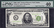 Fr-2201K 1934 $500 (LGS 3-digit) Dallas PMG EF-40 Serial # K00000944A