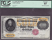 Fr.-1225H This is the 1900 $10,000 Gold Certificate with Ser. H59607in a PCGS-64 holder. This is one of those very special notes that come along eve...