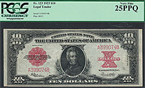 This is a Fr-123 $10 Legal Tender or commonly referred to as the Poker Chip note because of the design on the back resembles two $10 Poker Chips. It i...