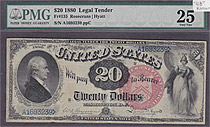 Fr.-135 1880 $20 Legal Tender PMG VF-25 Serial # A1693239