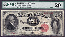 Fr.-147* 1880 $20 Legal Tender Star Mule Ser. # 31567B* PMG VF-20