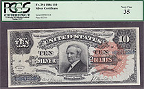 This is the famous 1891 $10 Silver Certificate commonly referred to as the “Hendricks Note or the Tombstone Note". Thomas A Hendricks was Vice-Preside...