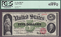 This 1862 $5 Legal Tender is a recent addition that literally came out of the woodwork. They are both new to the market. I purchased two consecutive s...