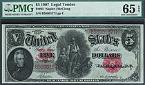 Here is a nice GEM 1907 $1 Legal Tender. The serial number is B58901371 and it resides in a GEM PMG-65EPQ holder. This note is sometimes referred to a...