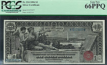 Fr.-224 1896 $1 Silver Certificate Ser. 3157977 PCGS-66PPQ