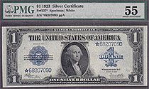 This is a 1923 $1 Silver certificate star that has been graded as a PMG-55. This is a nice problem free example for the type collector....