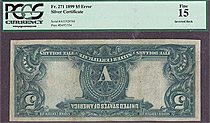 Fr.-271 1899 $5 Silver Certi. (Inverted Face error) PCGS-15