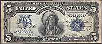 Upside down Chief. Here is another 1899 $5 Chief with a inverted face or back, however you want to call it. Actually since the back is printed first t...