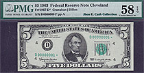 Fr.-1967* 1963 $5 Cleveland Star Ser. # D00000001* PMG-58EPQ