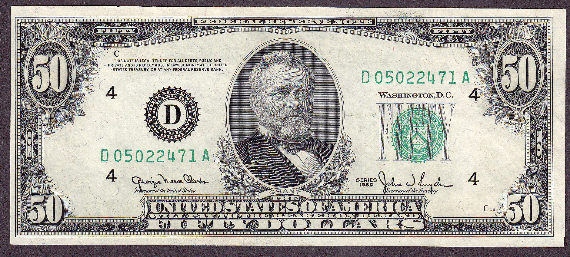 Fr.-2107D 1950 $50 Cleveland FRN Ser. # D05022471A Raw Note