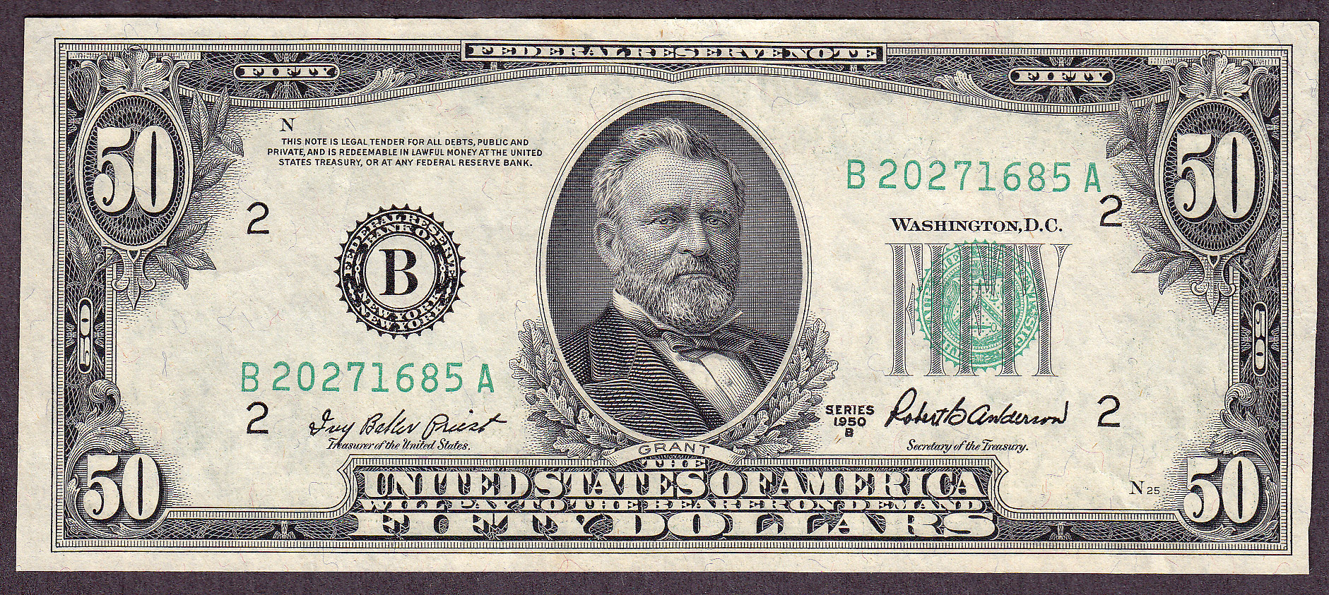 Fr.-2109B 1950 $50 FRN Ser. # B20271685A CGA-65