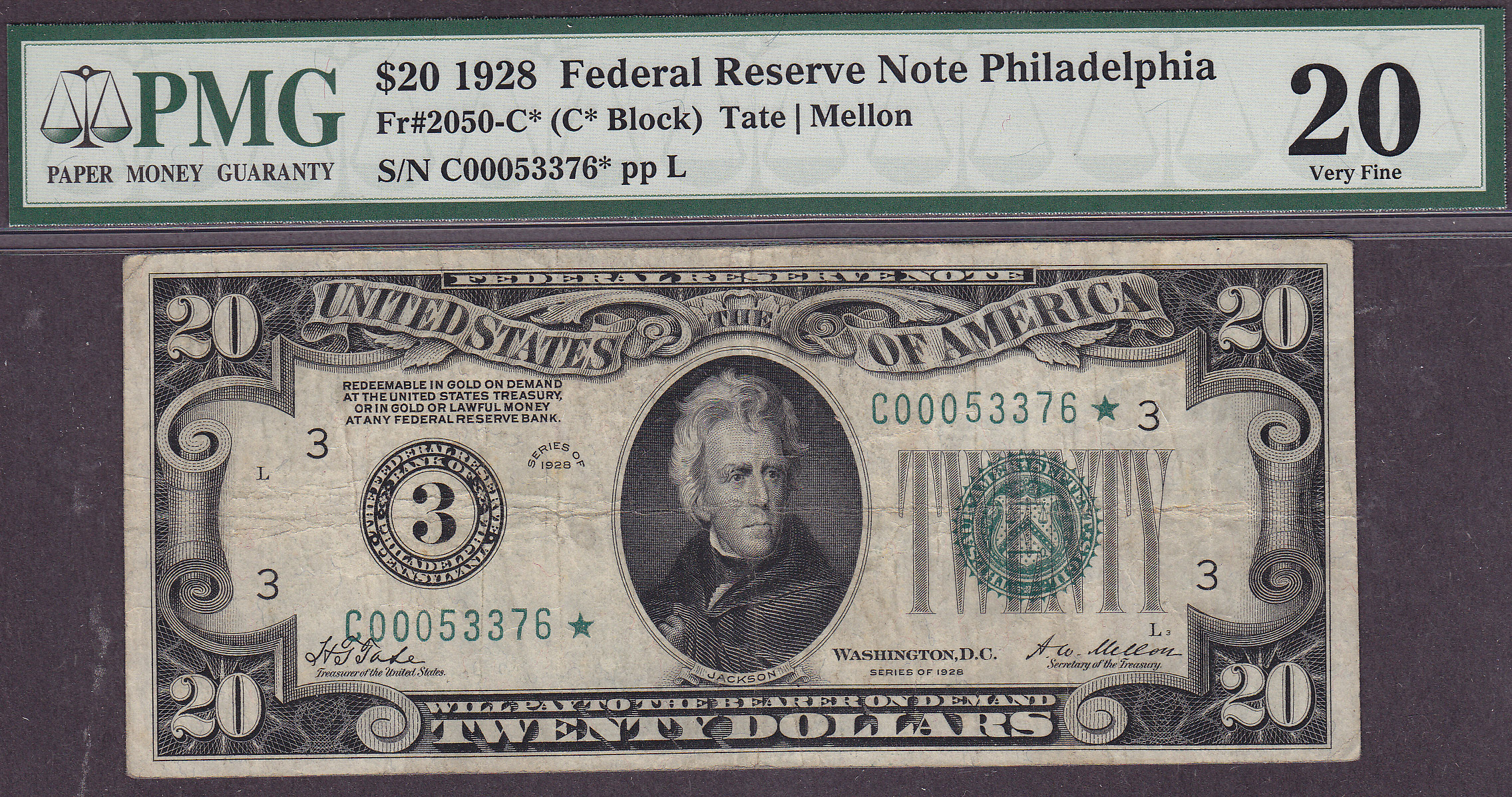 Fr.-2050* 1928 $20 Philadelphia Ser. C00053376* PMG-20