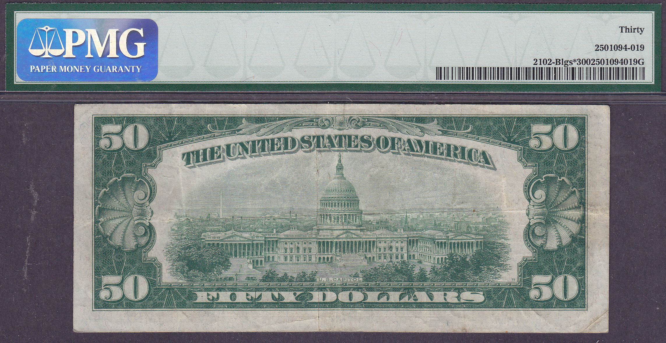 Fr.-2102B* 1934 $50 New York Ser. B00008680* PMG VF-30