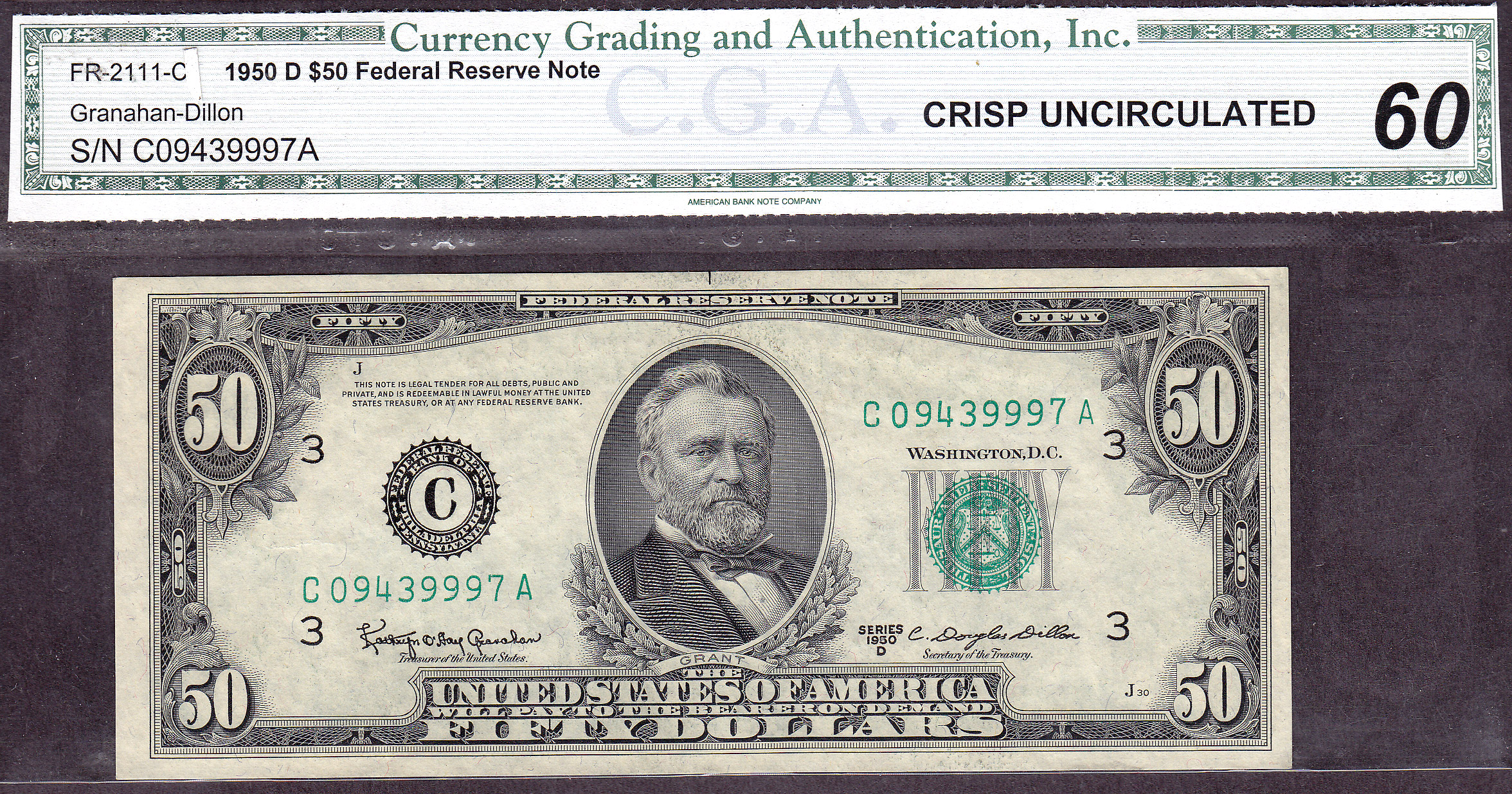 Fr.-2111C 1950D $100 FRN Ser. # C09439997A CGA-60
