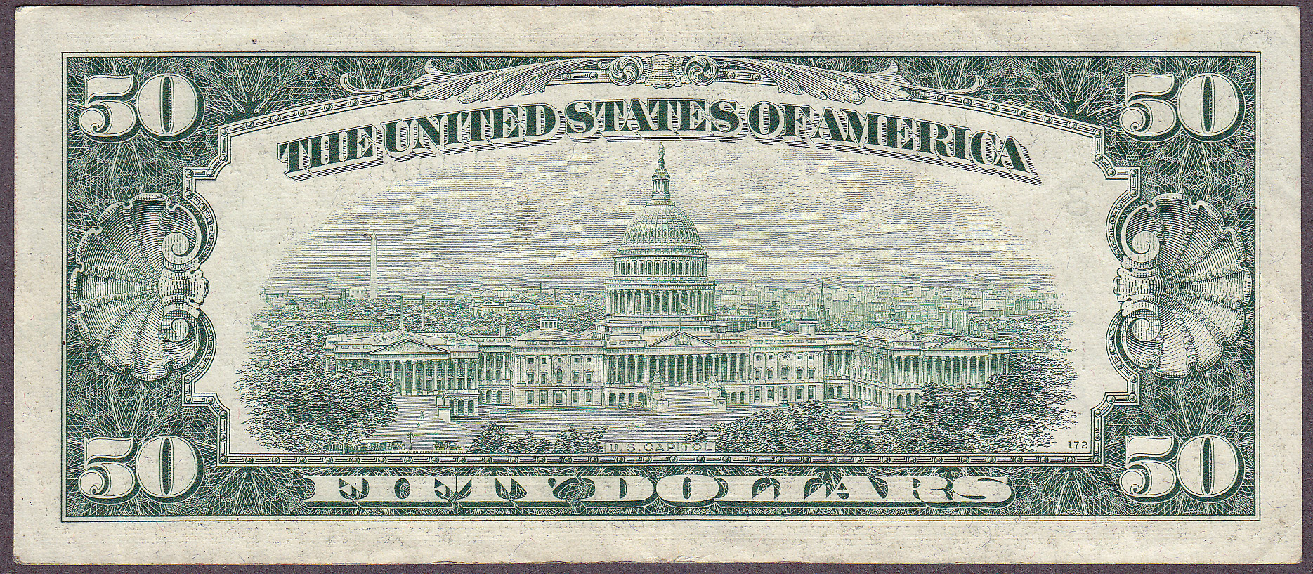 Here is an EF 1950D $50 St Louis. The serial number is H00808657*. No rips, tears, pinholes or bank marks. A stunning example of this tough 1950D* series.
