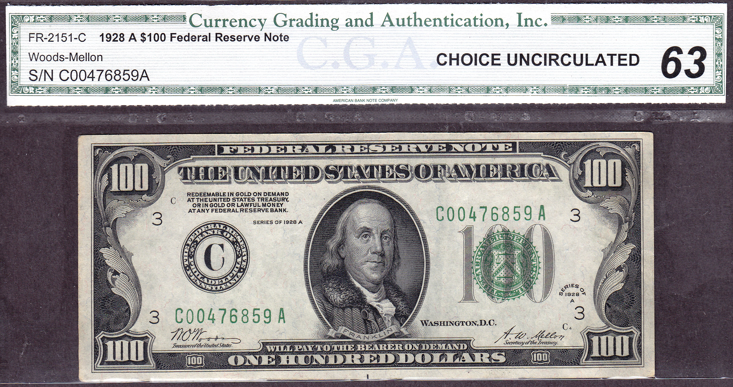 Fr.-2151 1928A $100 FRN Ser. # C00476859A CGA-63
