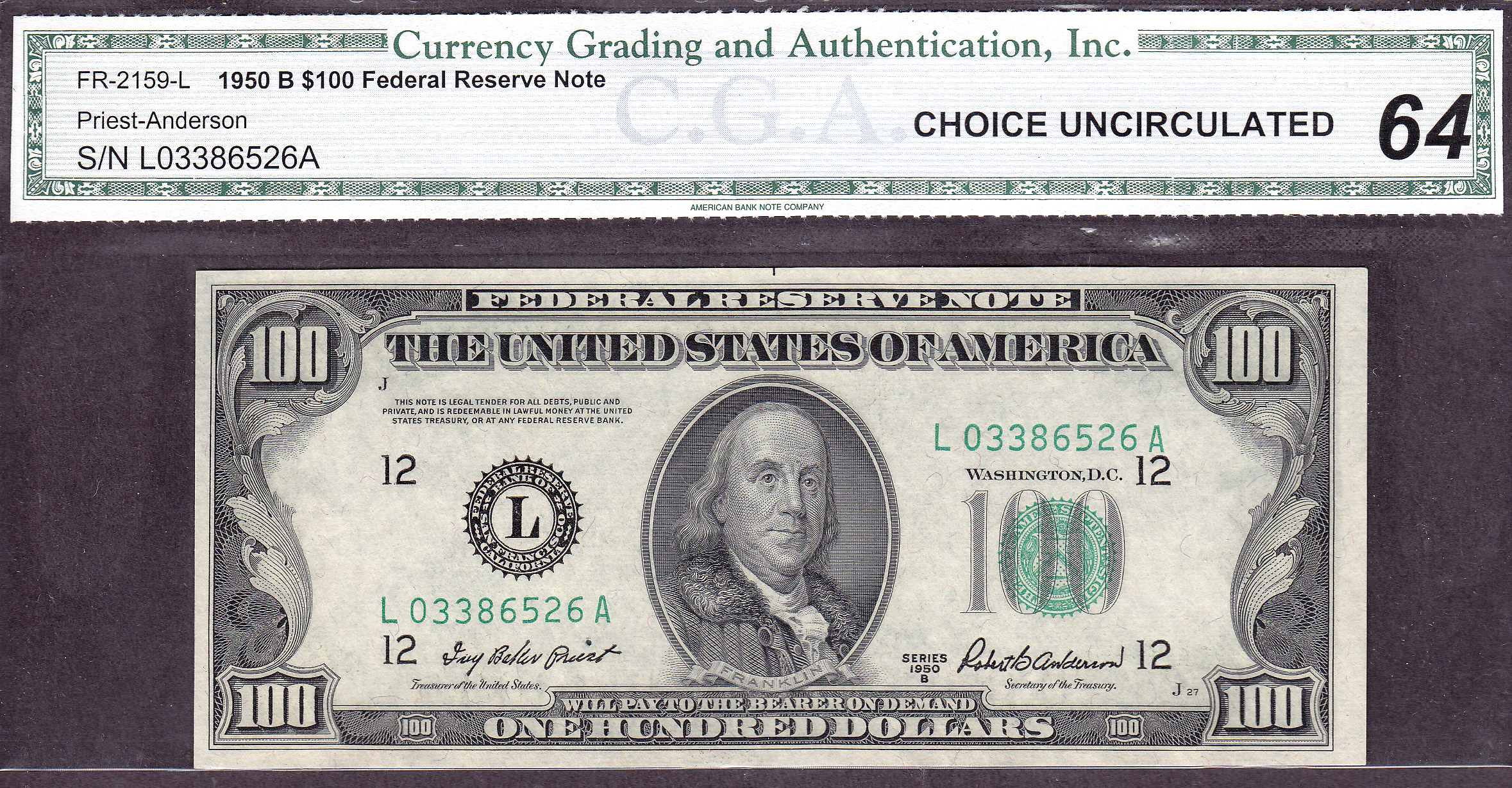 Fr.-2159 1950B $100 FRN Ser. # L03386526A CGA-64