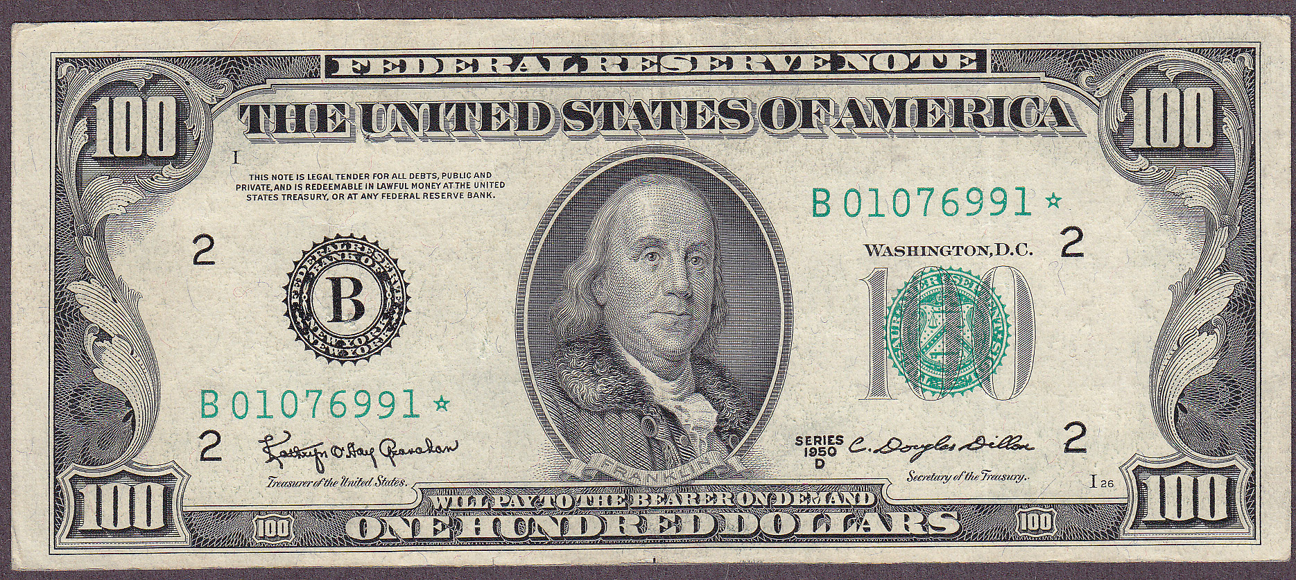 Fr.-2161* 1950-D $100 New York FRN Ser. B01076991* Raw