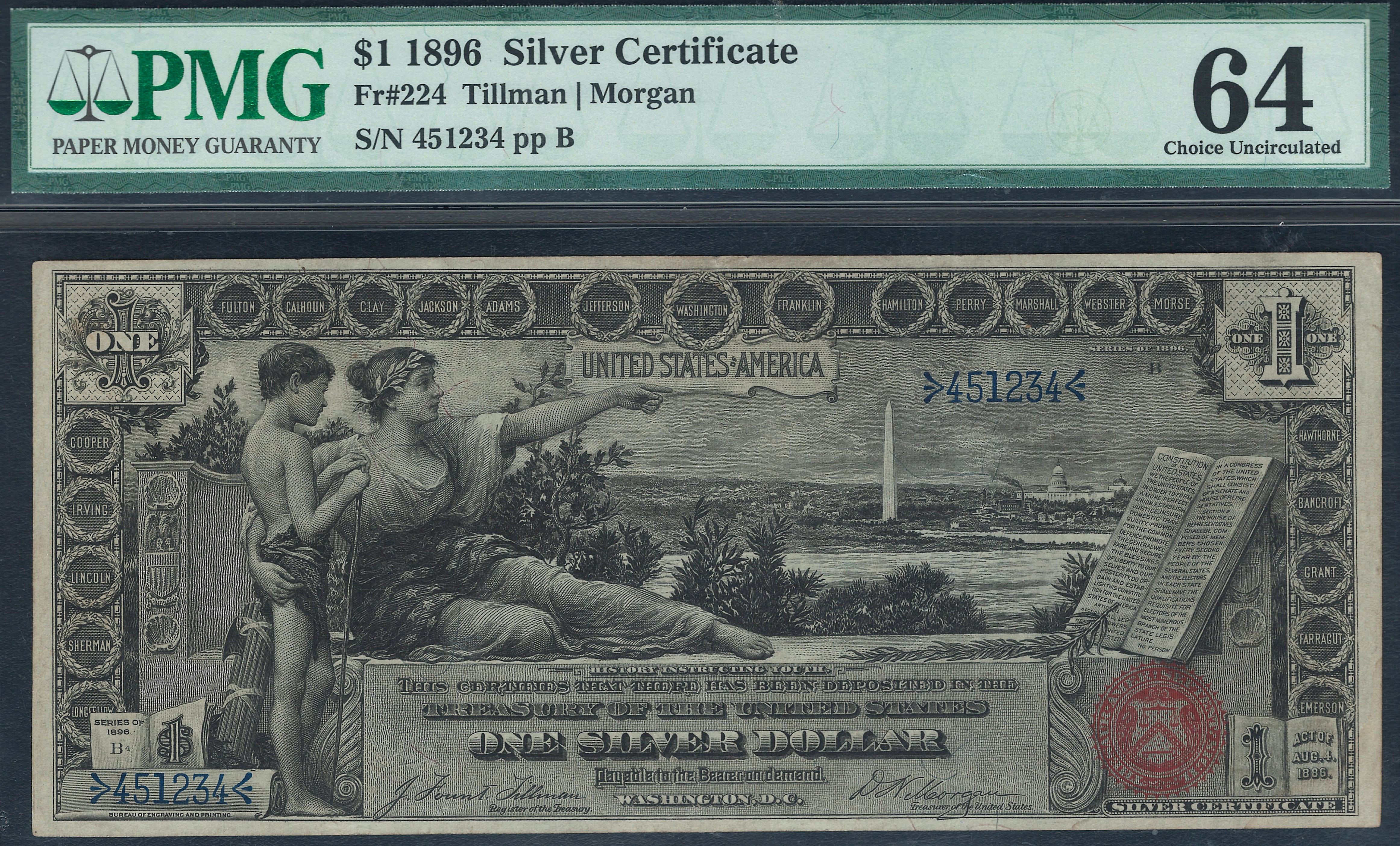 Fr.-224 1896 $1 Silver Certificate Ser. 451234 PMG-64